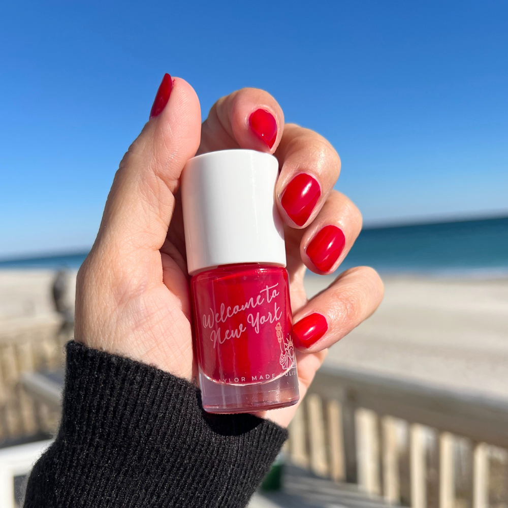 A classic, vibrant red with a glossy finish that makes a statement. The front bottle artwork features the iconic Statue of Liberty—the ultimate symbol of arrival and new beginnings. This shade is bold, confident, and unapologetically New York.